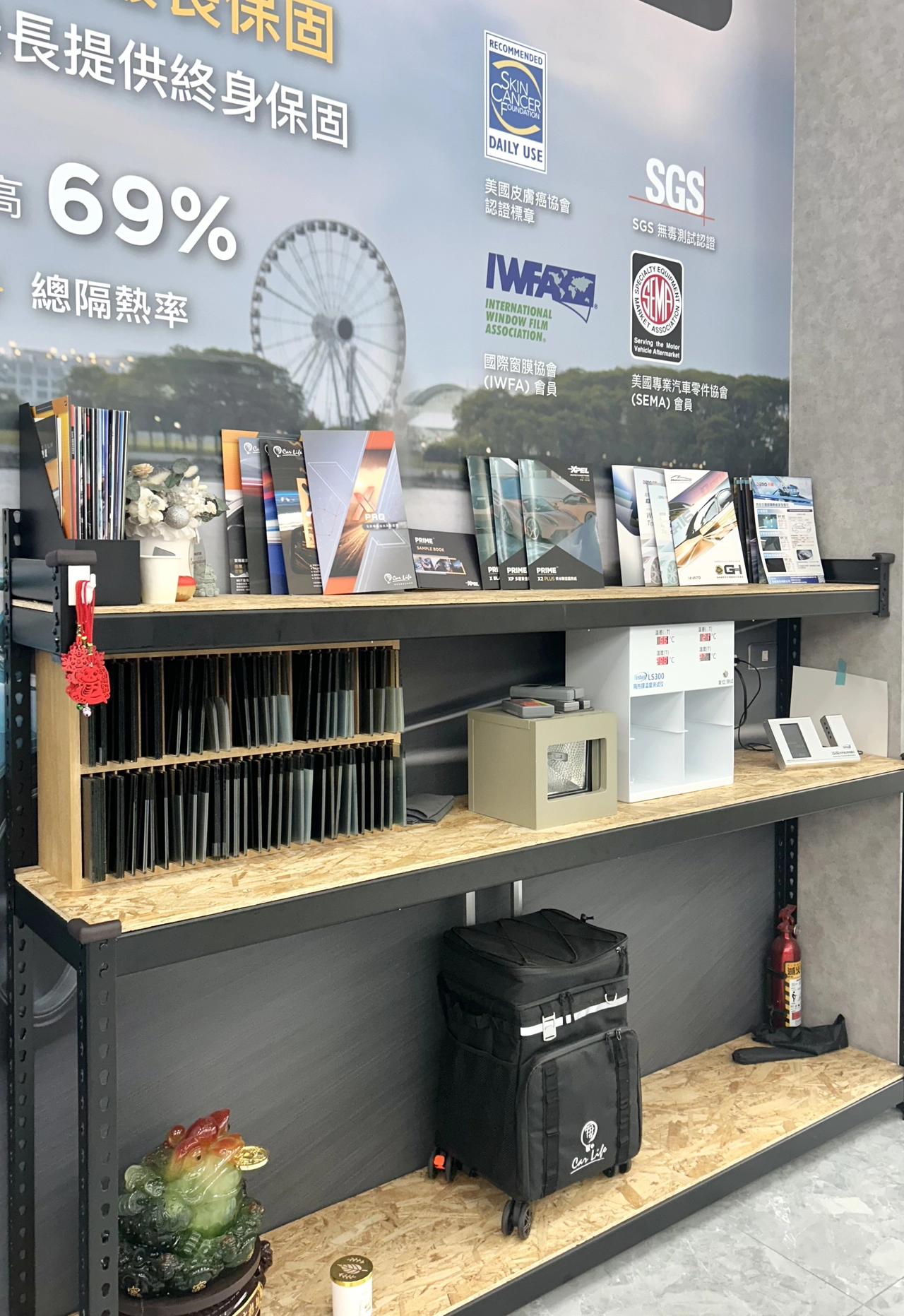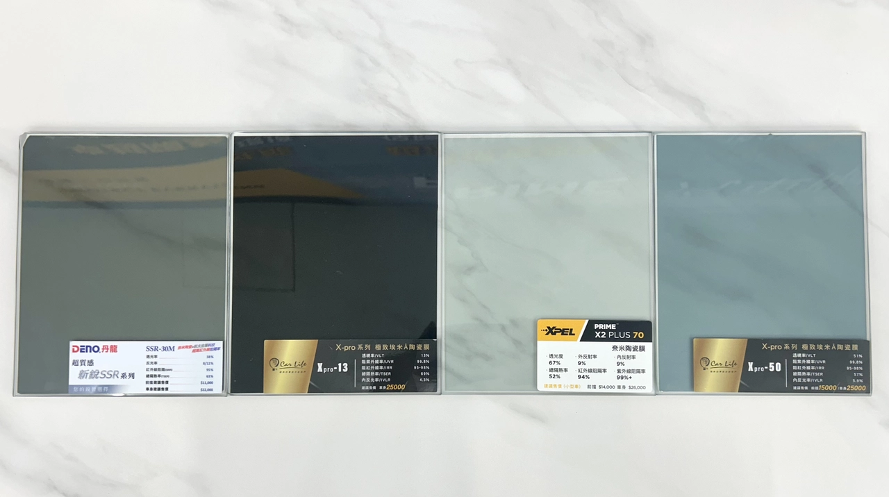 老闆特別說明,由於重視品質,也在乎消費者使用上的實際考量,引進這三款國內外的汽車隔熱紙品牌,完全是服務取向。丹龍 DENO、Car life、XPEL 各自有其特點,擅長功能到呈現顏色更是不同。透過三項對比性高的隔熱紙廠商,更能協助顧客有一個參考值,至少知道自己更需要控管預算、隔熱程度還是售後服務。