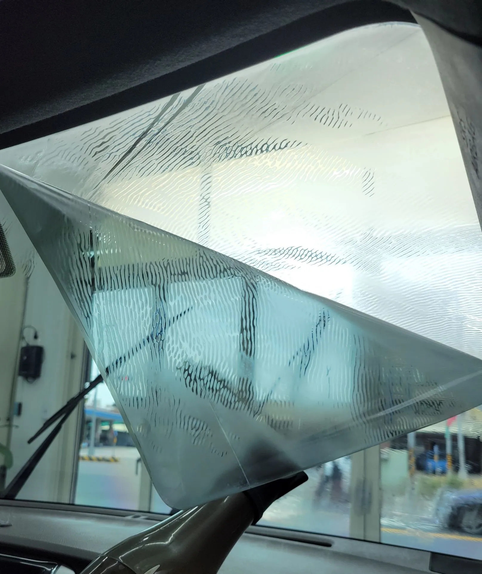 額外提醒,這邊僅針對該材質的介紹,經過不同品牌技術加工,就會有不一樣的效果和價位!另外,一般適合的好的隔熱紙,可曬 3-5 年都不會異常;若沒有貼好或買到膜料太差的,容易沒曬多久就開始變質,例如陶瓷膜會有白霧現象,其他則可能遇到變色、脆化、大量起泡 (下圖呈現示範),有時候清除下來甚至遠比原本貼一份品質好的隔熱紙久很多,再次建議台中車主們,尤其領新車務必選適合的隔熱紙,才能避免要二次花費的情況。